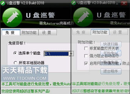 該軟件簡潔易用,可以指定單個磁盤進行免疫,也可對所有本地磁盤進行免疫,經常使用U盤的電腦用戶不妨試試。