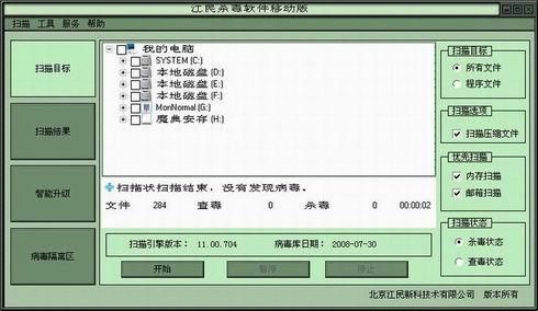 魔典殺毒U盤江民版內部固化了江民殺毒軟件移動版,無需安裝、即插即用,并且就算格式化U盤也不會造成殺毒軟件丟失。作為國內的三大殺毒軟件產品之一的江民科技,在反病毒方面有著近20年的深厚經驗,并且在自我防護方面有獨到之處,完全可以讓用戶不必再為使用U盤的過程中感染并傳播病毒而擔心。