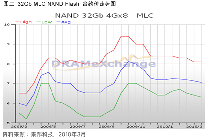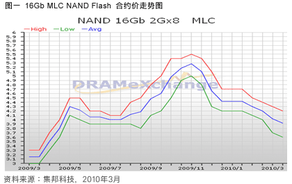 && 預(yù)期TLC記憶卡價格未來將隨市場供貨量遞增及生產(chǎn)成本下降而呈現(xiàn)緩跌的狀況,但目前電子系統(tǒng)產(chǎn)品客戶仍以采購具有較佳性能及可靠度的2-bit/cell MLC顆粒為主。由于自2Q10起多數(shù)NAND Flash供貨商將受惠于來自新型智能手機(jī)、平板計算機(jī)及新興移動式電子產(chǎn)品等應(yīng)用需求的遞增效益,再加上iPad 4月上市效應(yīng)的助力下,預(yù)期主流2-bit/cell MLC顆粒價格也將因這些正面因素激勵而呈現(xiàn)止跌回穩(wěn)的狀況。