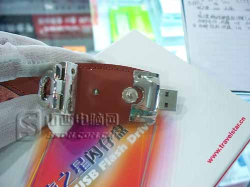 旅之星小西部皮革U盤是具有西部時尚風情,可當作機密盤和啟動盤雙盤使用的存儲產品。該產品具有超酷的采用PC級真皮加金屬結構的外觀,給人一種時尚、高貴、耀眼的感覺。目前太原售價1GB 65元。